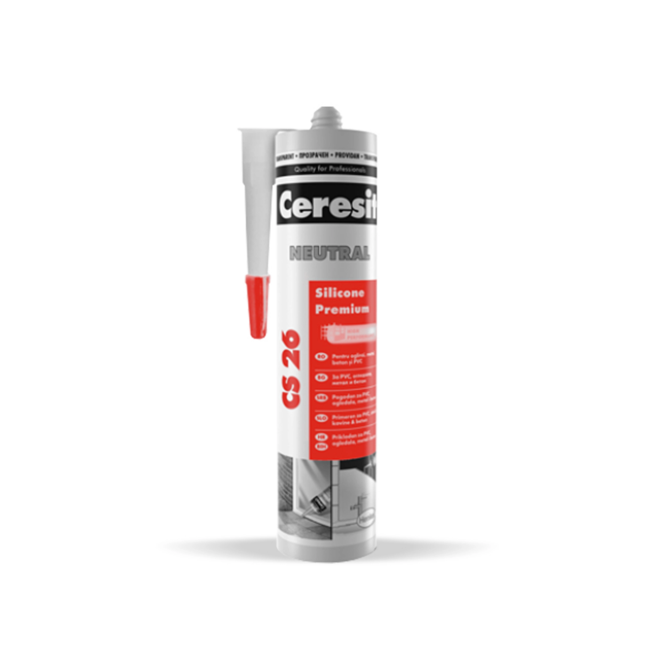 Se recomanda la etansarea geamurilor la ferestre si usi din metal, lemn sau PVC, la imbinari si sparturi in bai, saune, toalete, bucatarii. Ceresit CS 26 este rezistent la umezeala si variatii de temperatura, la actiunea razelor UV si imbatranire. Ceresit CS 26 nu se contracta in timp, nu corodeaza si are o elasticitate ridicata. Produsul are textura transparenta si se gaseste in tuburi de plastic de 280 ml.