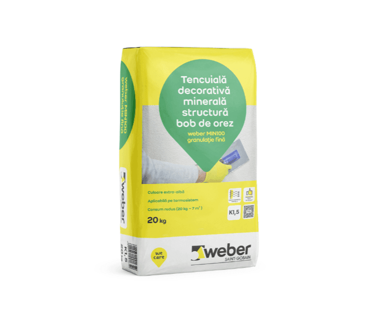 Tencuiala decorativa minerala Weber Min 100 R3, scoarta de copac, granulatie 3 mm, alb, 20 kg